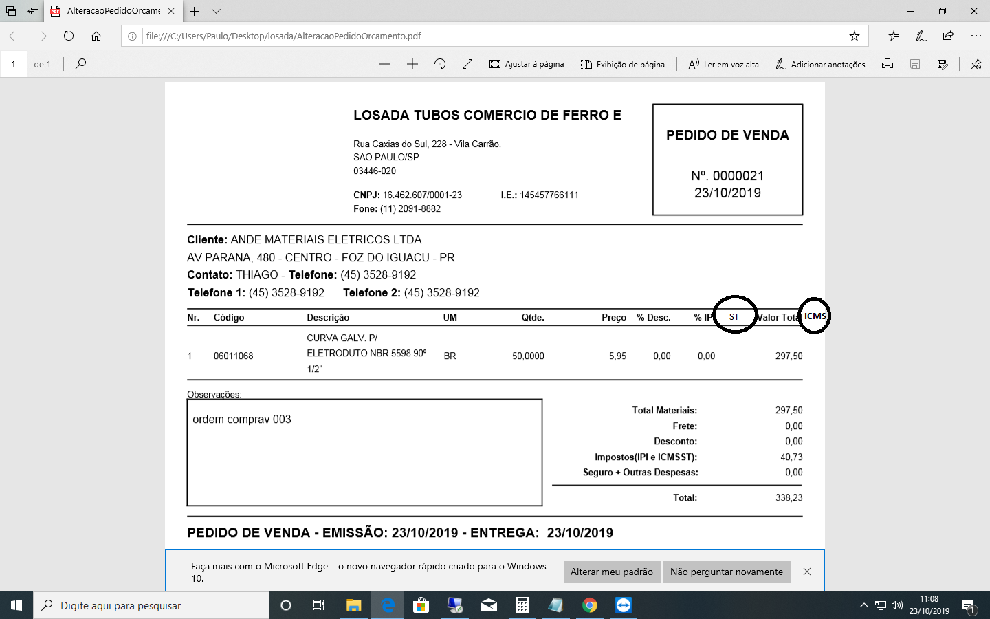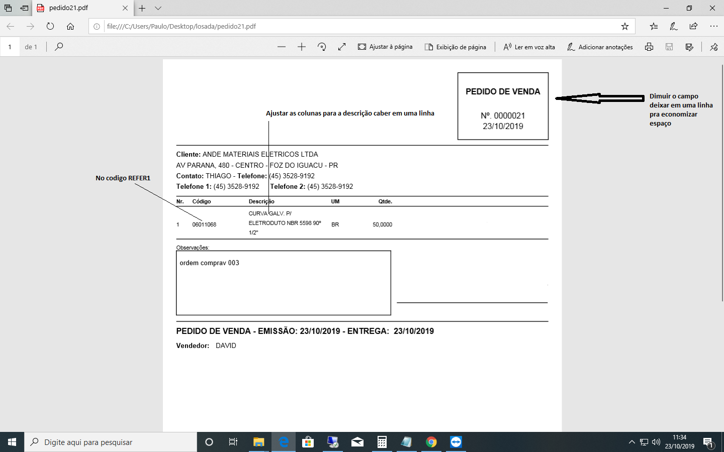 Impressos de Pedido e Orçamento - usar modelo padrão e acrescentar informações conforme exemplo anexo: ExemploAltPedOrc.png